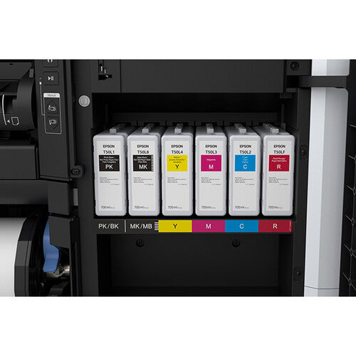 Epson delivers a first-of-its-kind design that redefines speed, versatility and efficiency for its class: the SureColor® T7770DL. Having the smallest footprint in its class1—up to 25% smaller than its competition1—and full-front operation means the T7770DL fits where other printers don’t. It’s designed for outstanding quality, sharpness and speed, generating technical drawings at production-class speeds over 1,400 ft2/hr2, A1/D-size prints in as little as 16 seconds2, and graphics at speeds up to 300 ft2/hr2. Its innovative UltraChrome® XD3 six-ink set with dedicated Red Ink opens the door to both an extraordinary color gamut for a production printer and rich red branding colors. Built with a 1.6-liter bulk ink pack system (ink sold separately), this high-quality printer provides over double the ink capacity of previous generations for a remarkably low ink cost per milliliter, as well as helps minimize waste when compared to Epson® SureColor T-Series cartridge systems. And simple, carefree operation combined with new levels of versatility and media flexibility helps users do more using less space—all with a low total cost of ownership. Add it all up, and this is not just a one-of-a-kind printer: it’s the new benchmark in high-speed CAD and graphics.